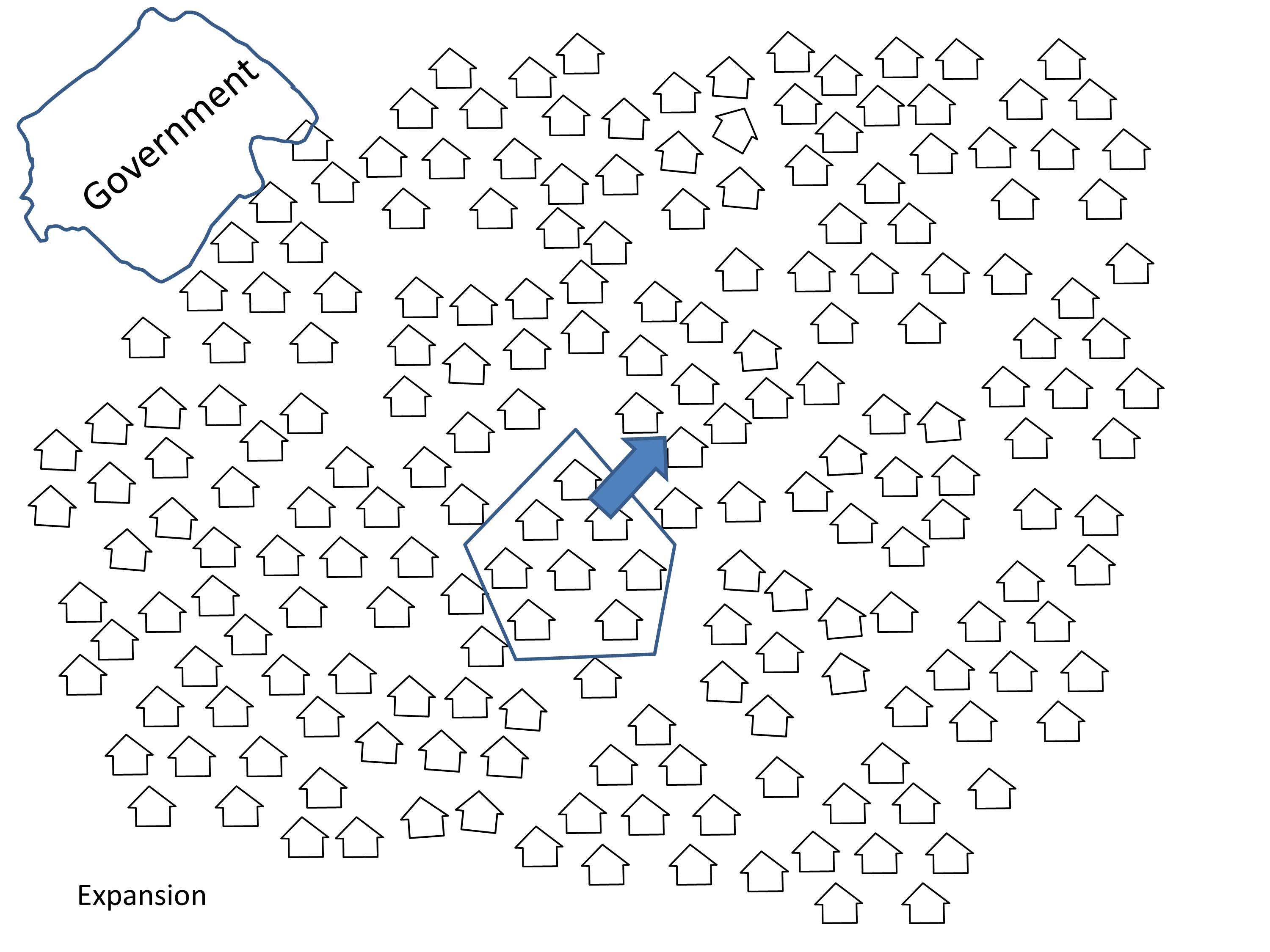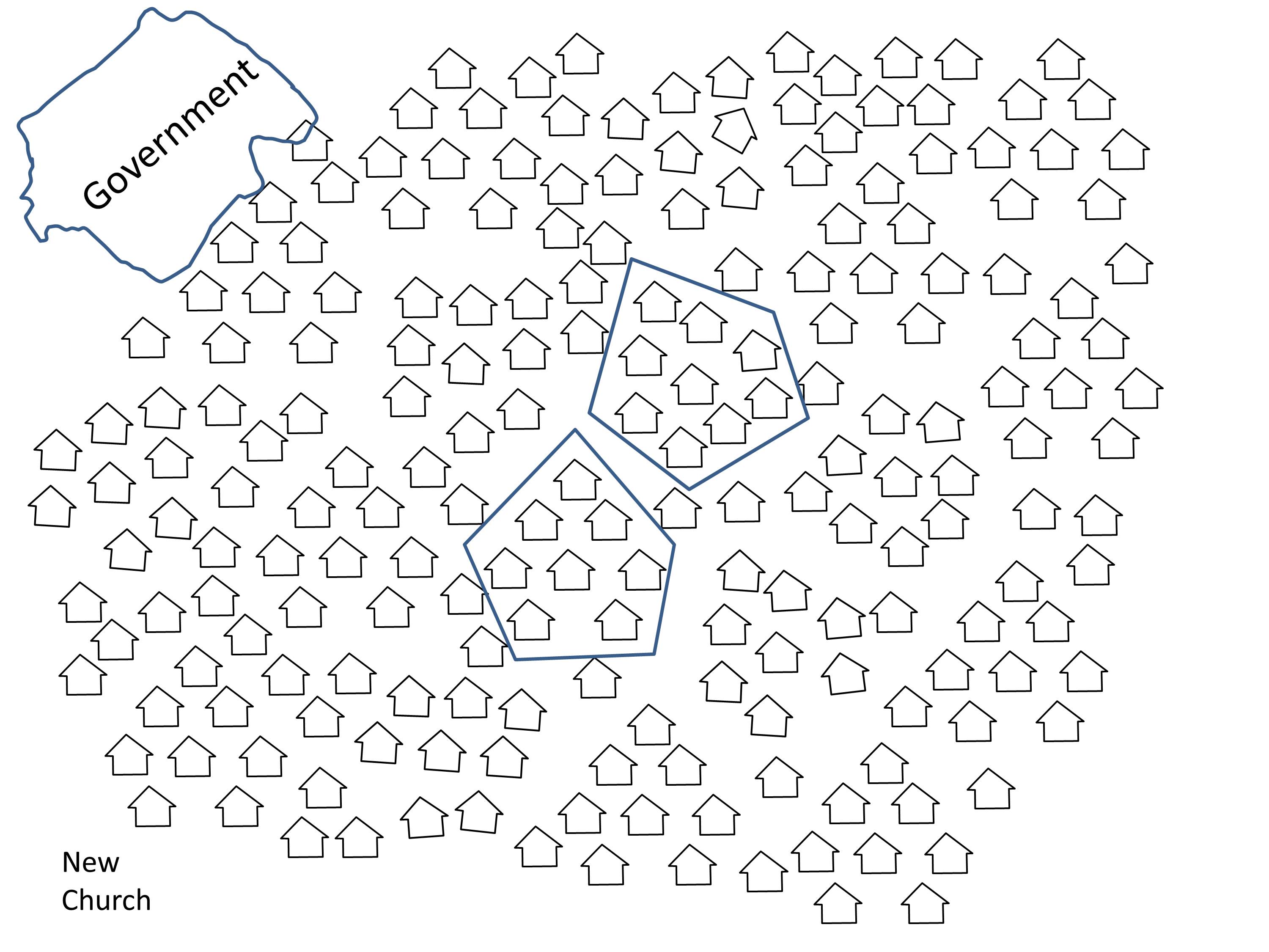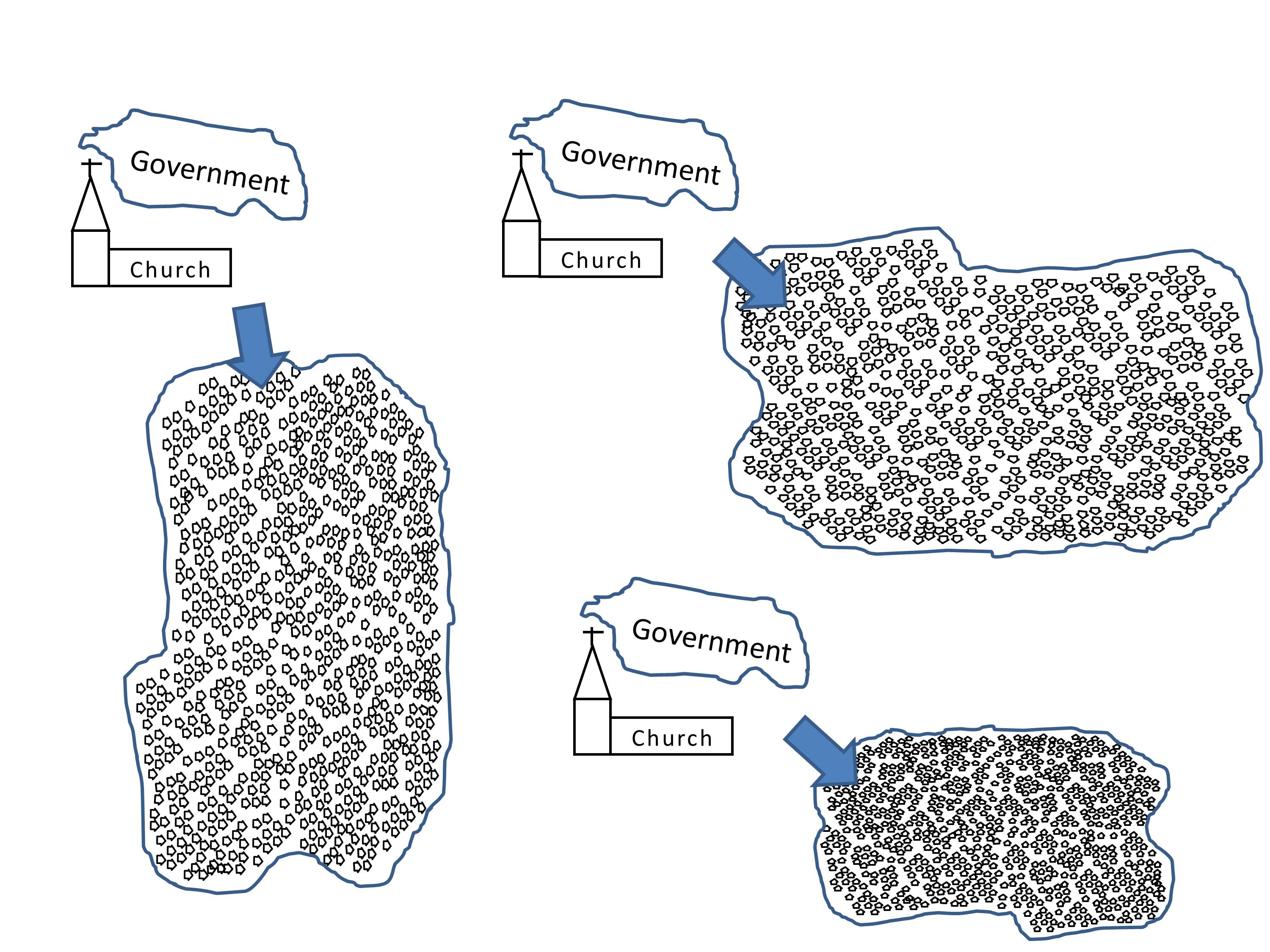 The church and the state both work from the edge of society. The government passes laws and issues decrees. It sends its agents and taxgatherers to enforce its power and control.