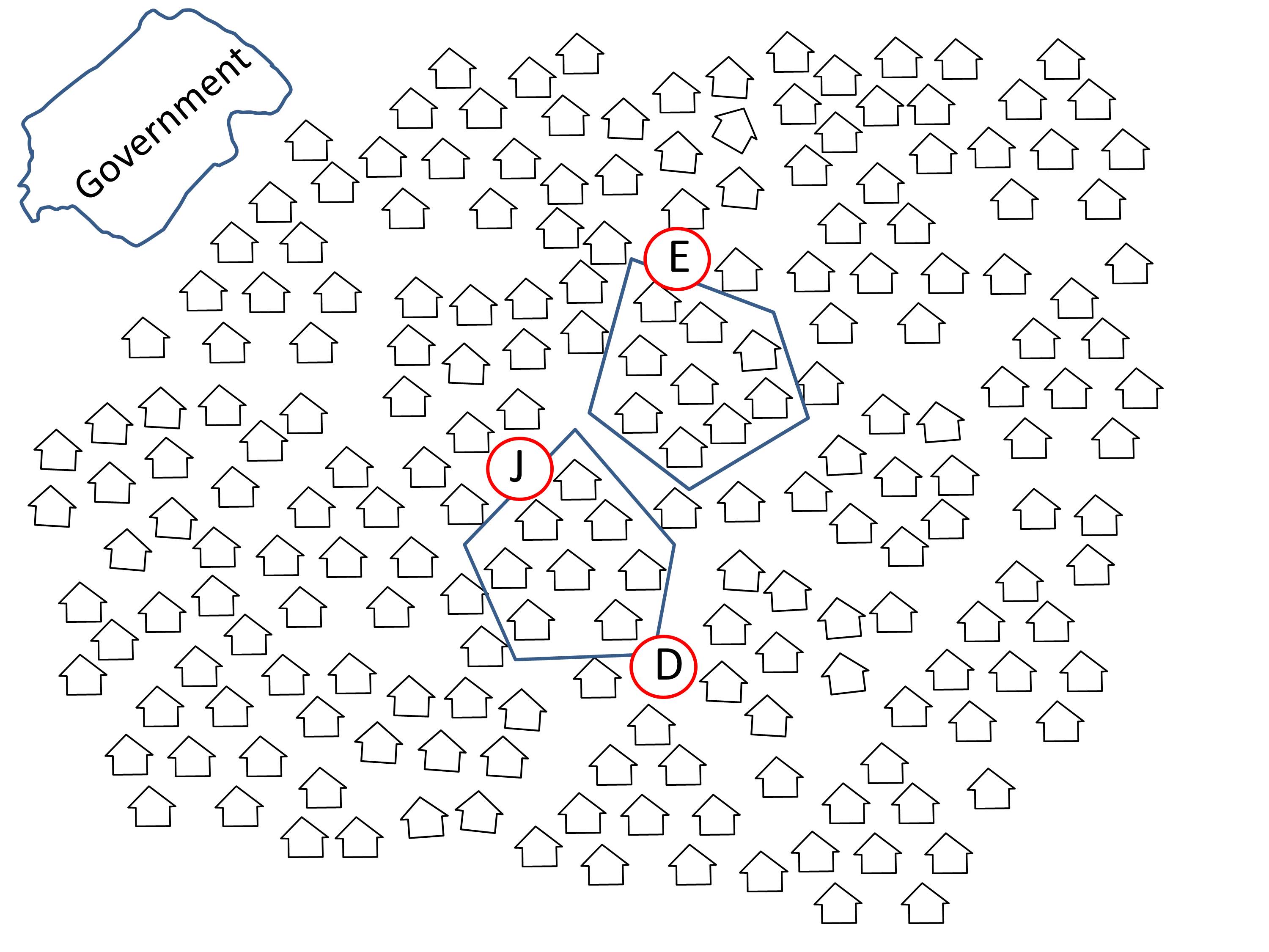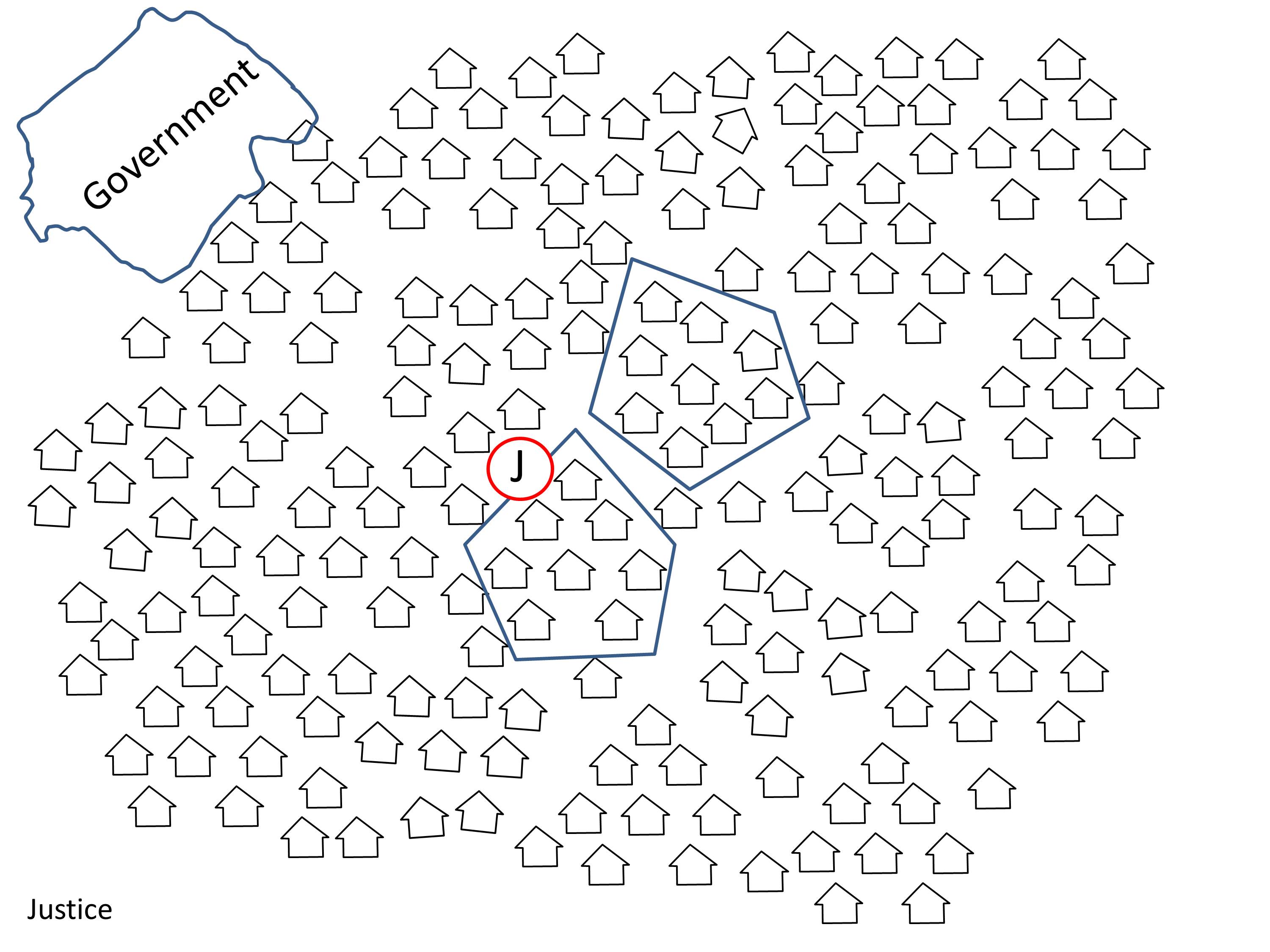 A couple of the elders in the first church are recognised for their wisdom, so people start taking their disputes to them. Everyone recognises that their justice is honest and effective. An alternative system of justice emerges (J), when these elders are recognised as local judges. Many from outside the church take their cases to these elders because they know they will get a quick and honest resolution to their disputes.